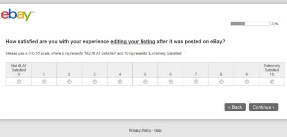 Chances are if you're an eBay seller you've received at least one survey from the company asking you about current features and policies, or asking your opinion about proposed changes. In the last year or two, eBay's been sending many surveys to users asking them just a few questions about their satisfaction level with features they've used. |