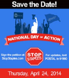 The American Postal Workers Union (APWU) is engaging in the National Day of Action to protest what it calls the Postal Service's "sweetheart deal" with Staples. The union says the goal of the program is to replace the living-wage jobs held by USPS employees with low-wage jobs in the private sector.