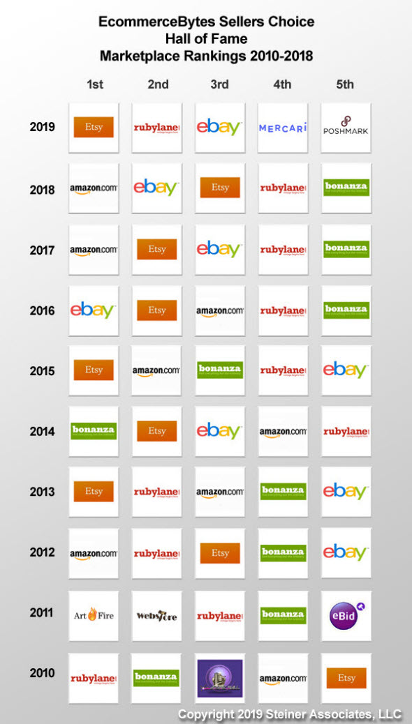 EcommerceBytes website, along with links to results for each of the 11 online marketplaces included in the survey. Thanks to readers for participating in the 10th annual Sellers Choice Awards!